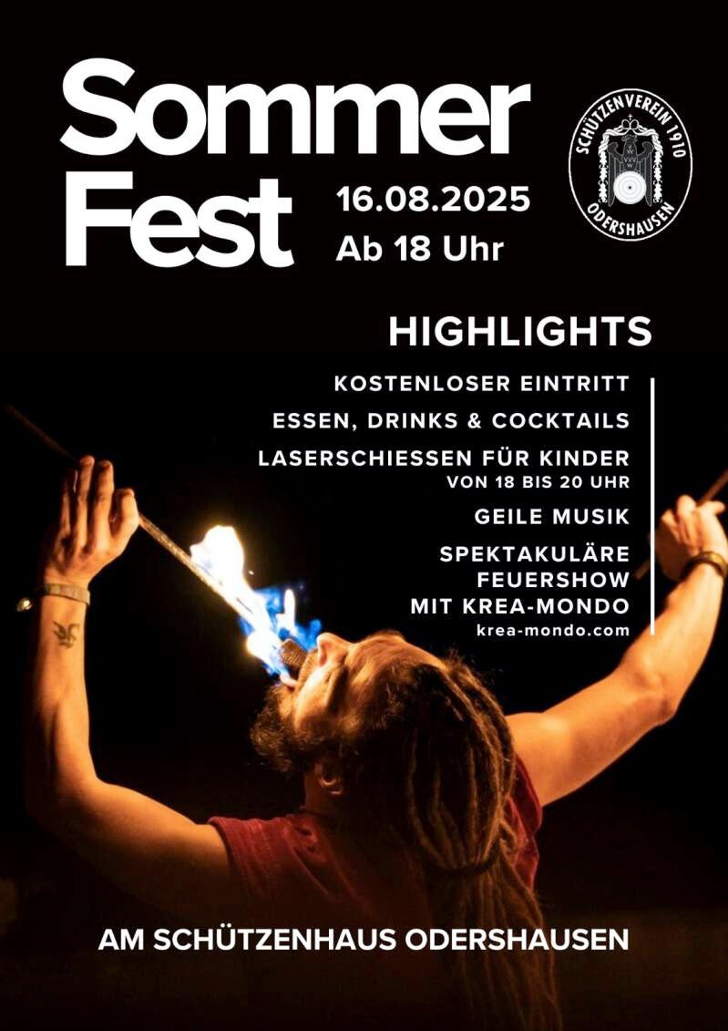 Ab 18 Uhr lädt der Schützenverein 1910 Odershausen.V. zum Sommerfest ein.